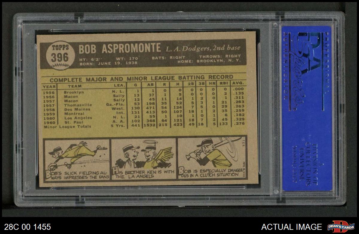 1961 Topps #396 Bob Aspromonte PSA 7 - NM