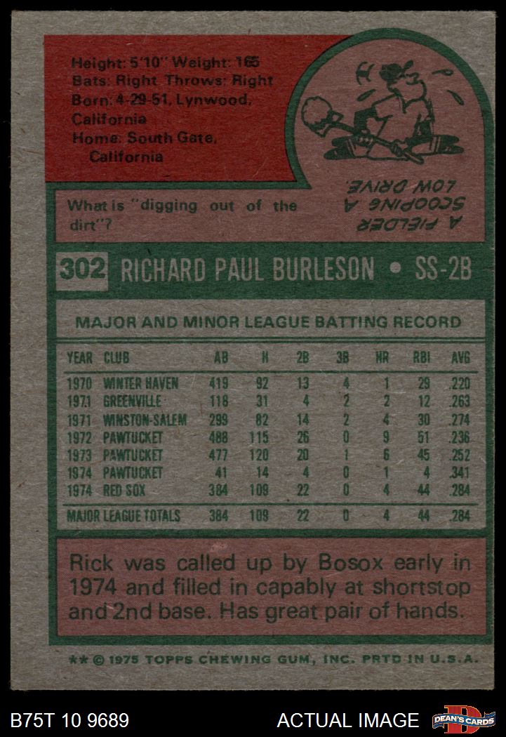 1975 Topps #302 Rick Burleson 5 - EX