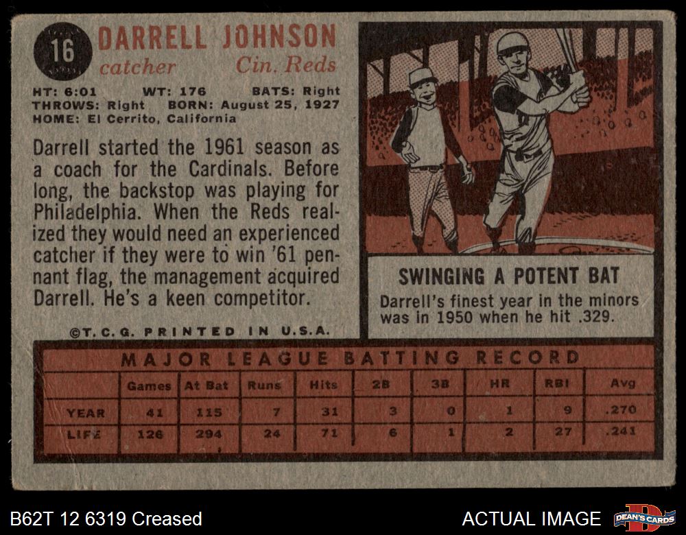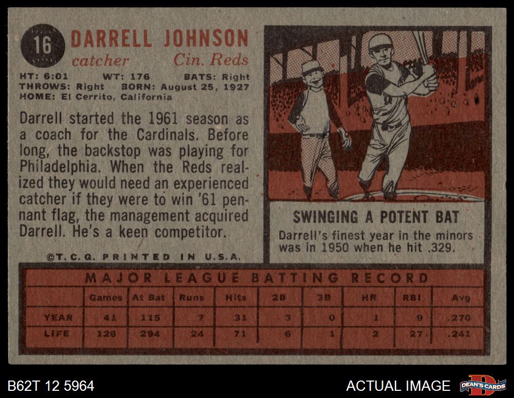 1962 Topps #16 Darrell Johnson