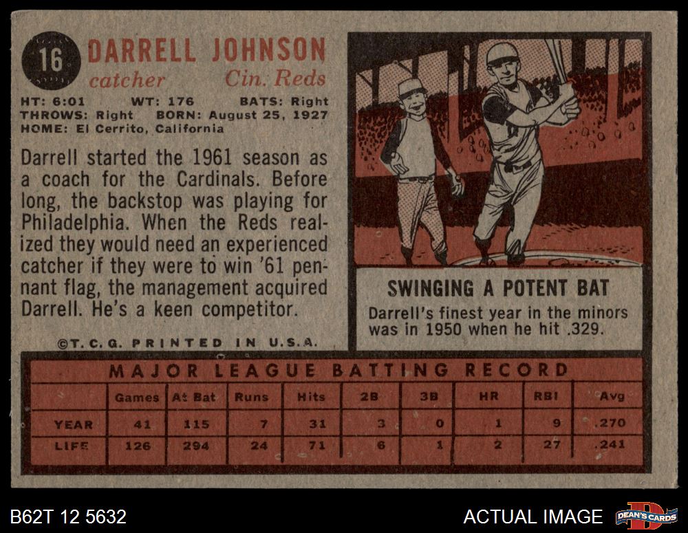 1962 Topps #16 Darrell Johnson 5 - EX