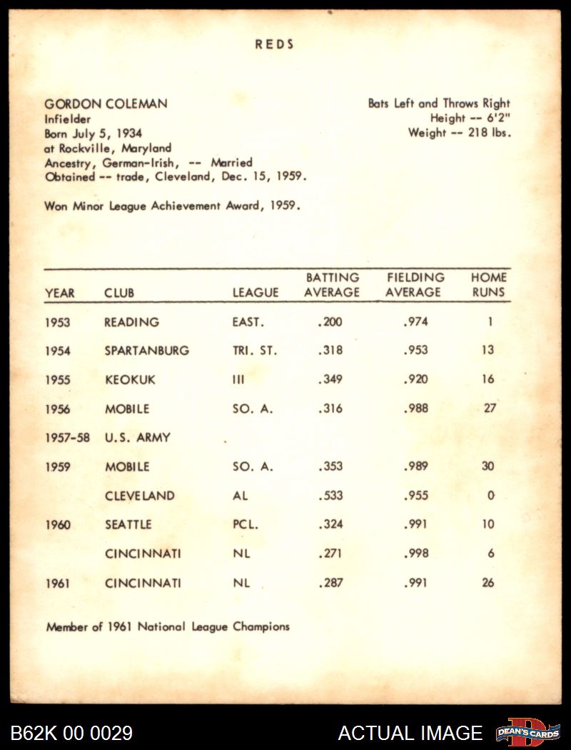 1962 Kahn's Gordon Coleman 4 - VG/EX