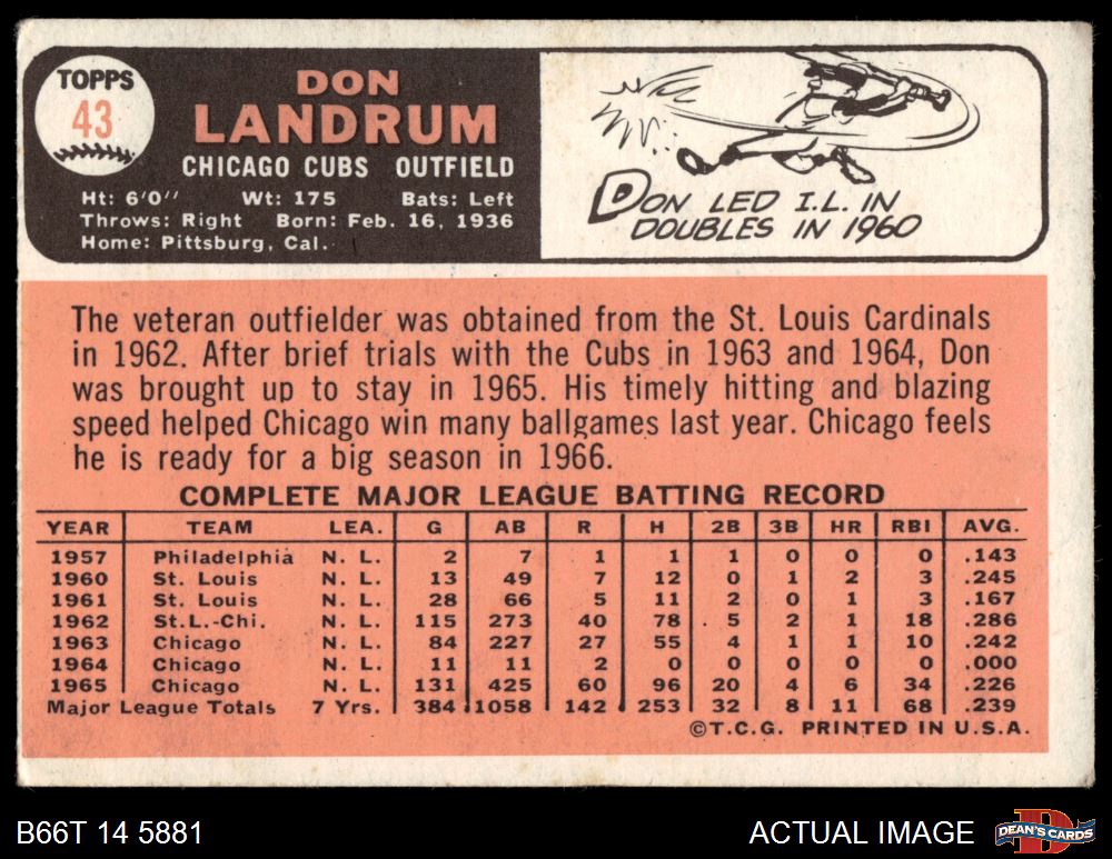 1966 Topps #43 xBTN Don Landrum 2 - GOOD