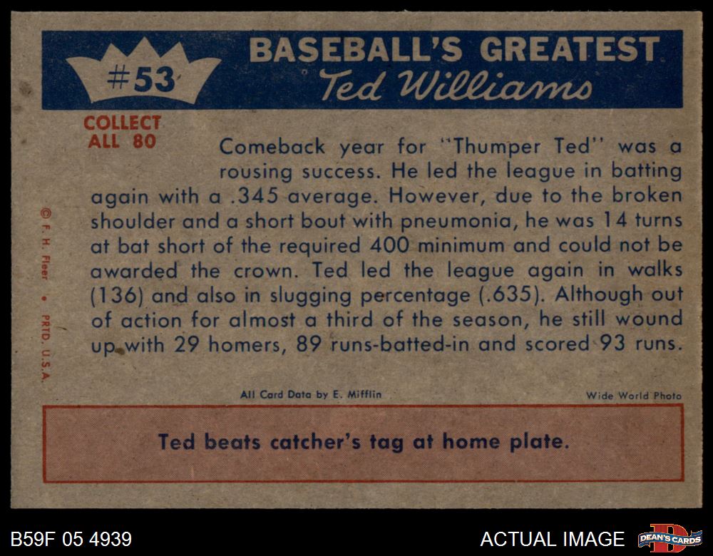 1959 Fleer #53 - Ted Williams Comeback Success 5 - EX