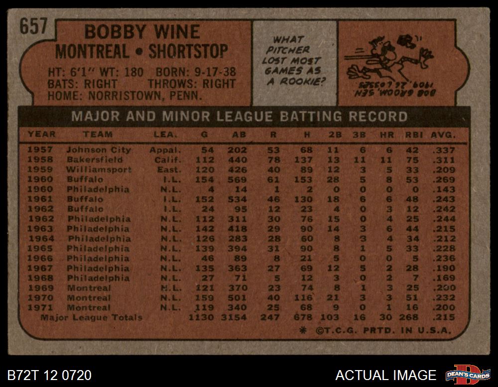 1972 Topps #657 Bobby Wine 3 - VG