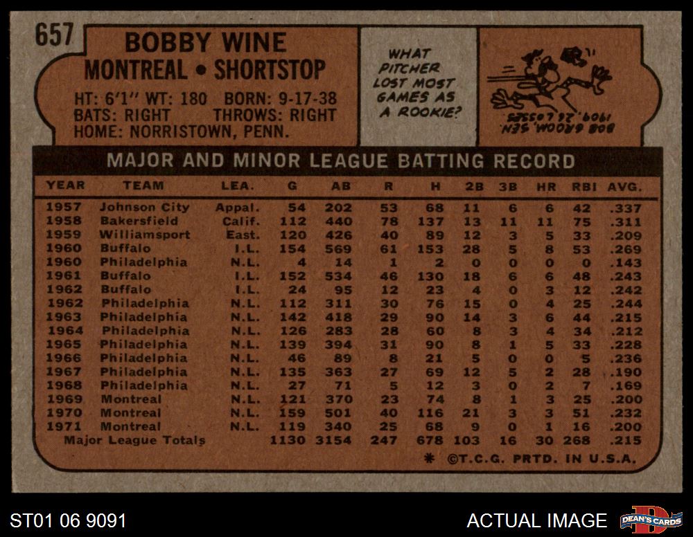 1972 Topps #657 Bobby Wine 6 - EX/MT