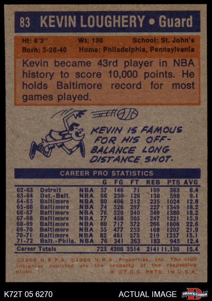 1972 Topps #83 Kevin Loughery 7.5 - NM+