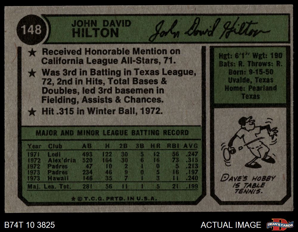 1974 Topps #148 SD Dave Hilton 7.5 - NM+