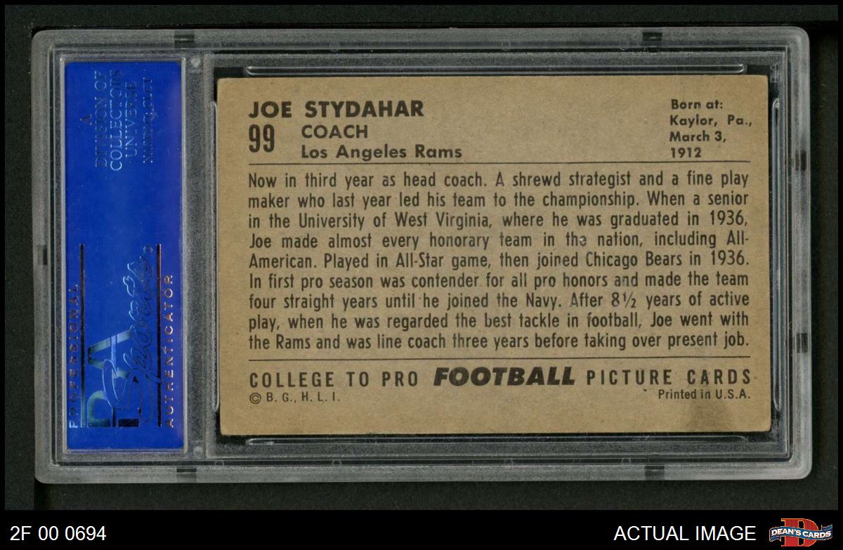 1952 Bowman Large #99 Joe Stydahar PSA 4 - VG/EX