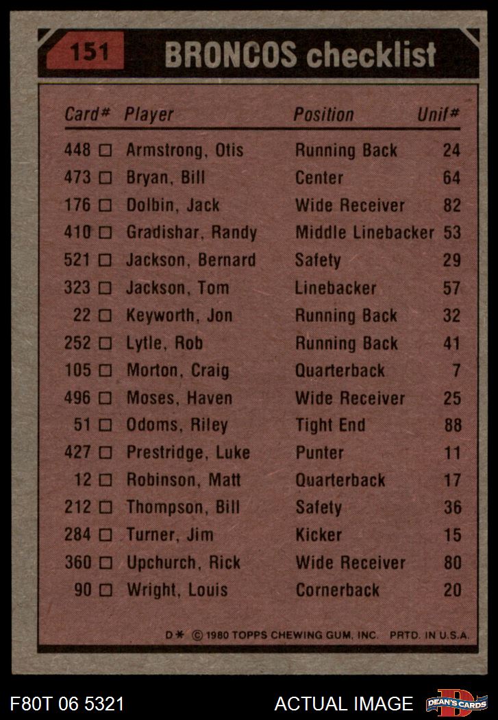 1980 Topps Football Cards (4,340 available)1980 Topps Broncos (183 available)