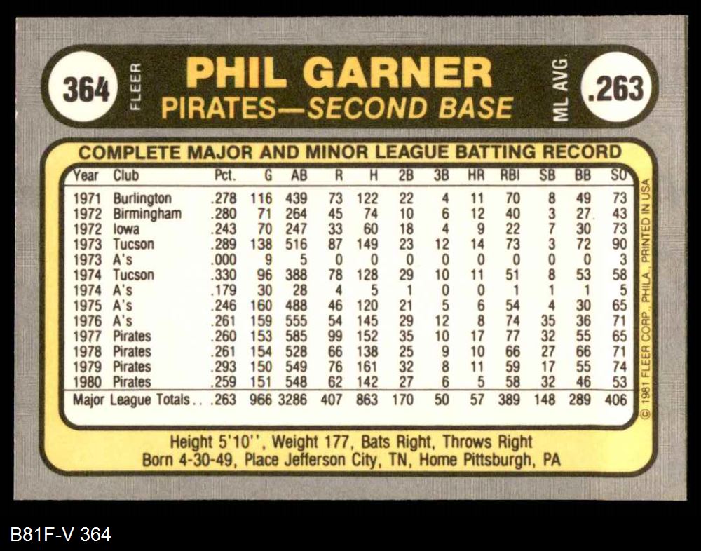 1981 Fleer #364 Phil Garner