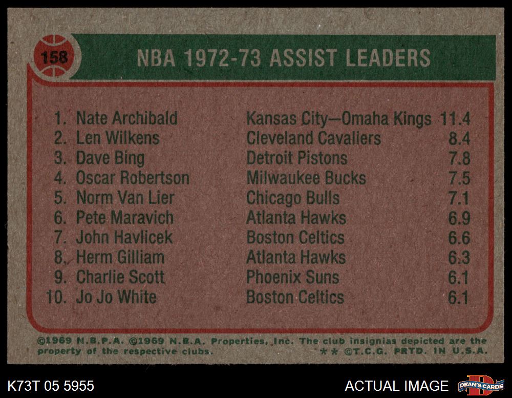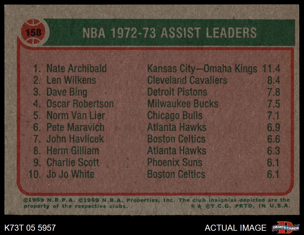 1973 Topps #158 - Nate Archibald / Lenny Wilkens / Dave Bing NBA Assists Leaders 7 - NM