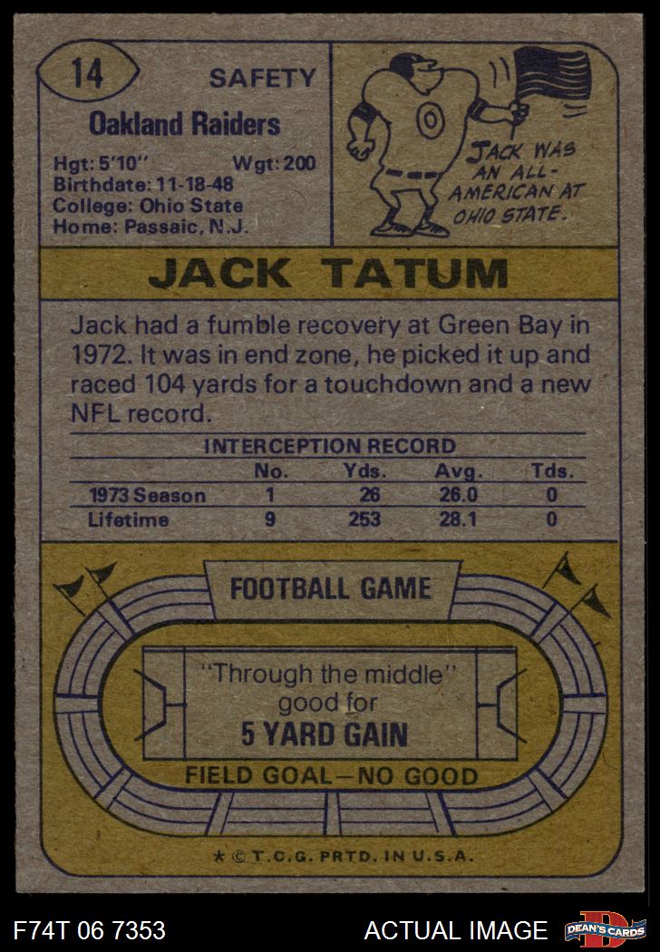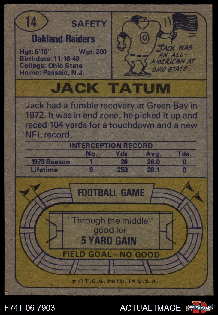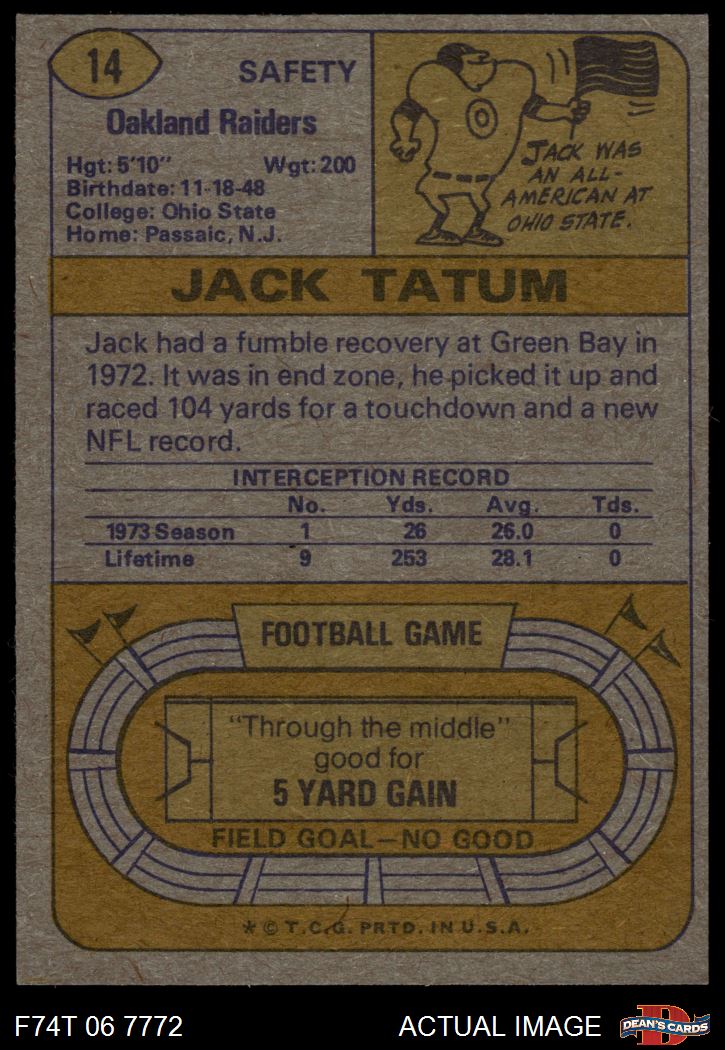 1974 Topps #14 Jack Tatum