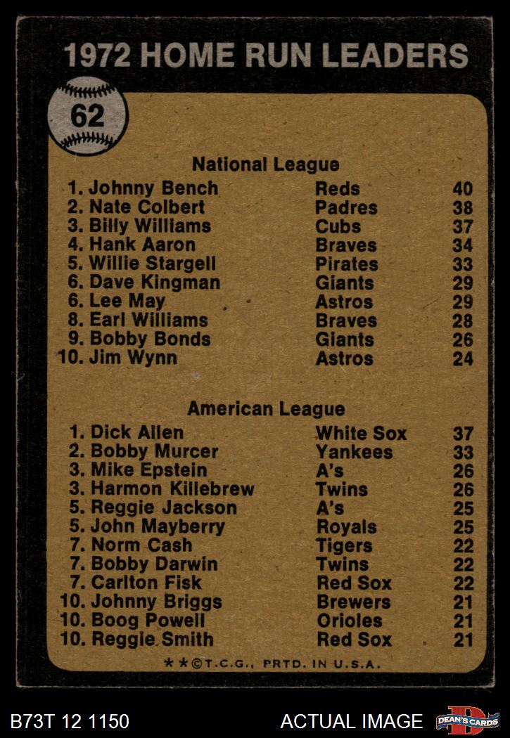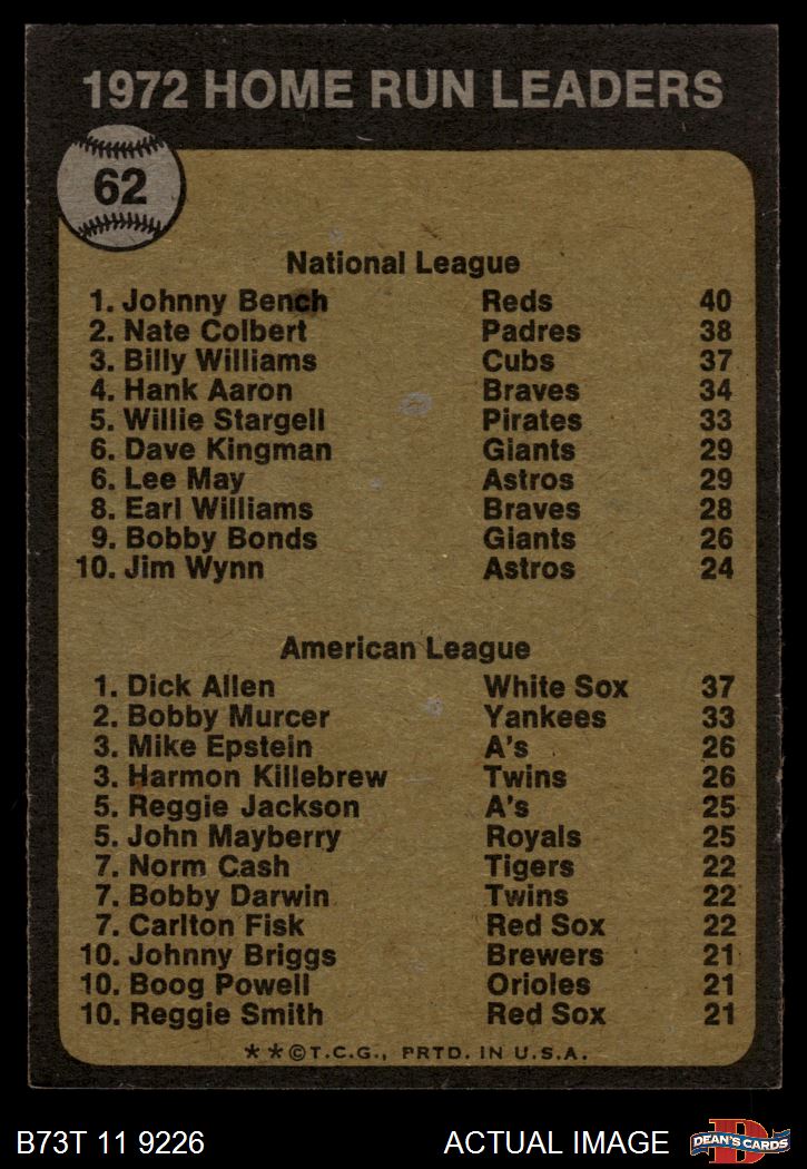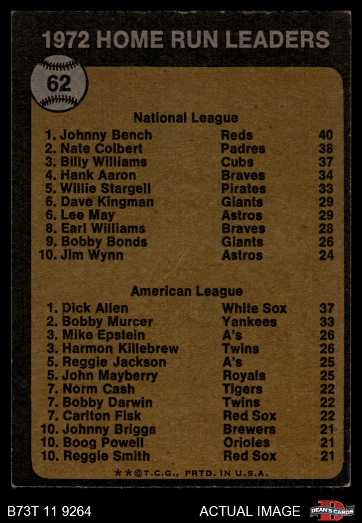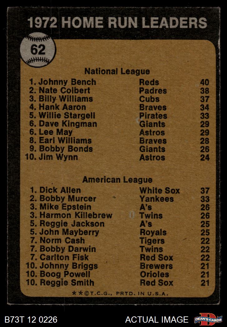 1973 Topps #62 HR Leaders