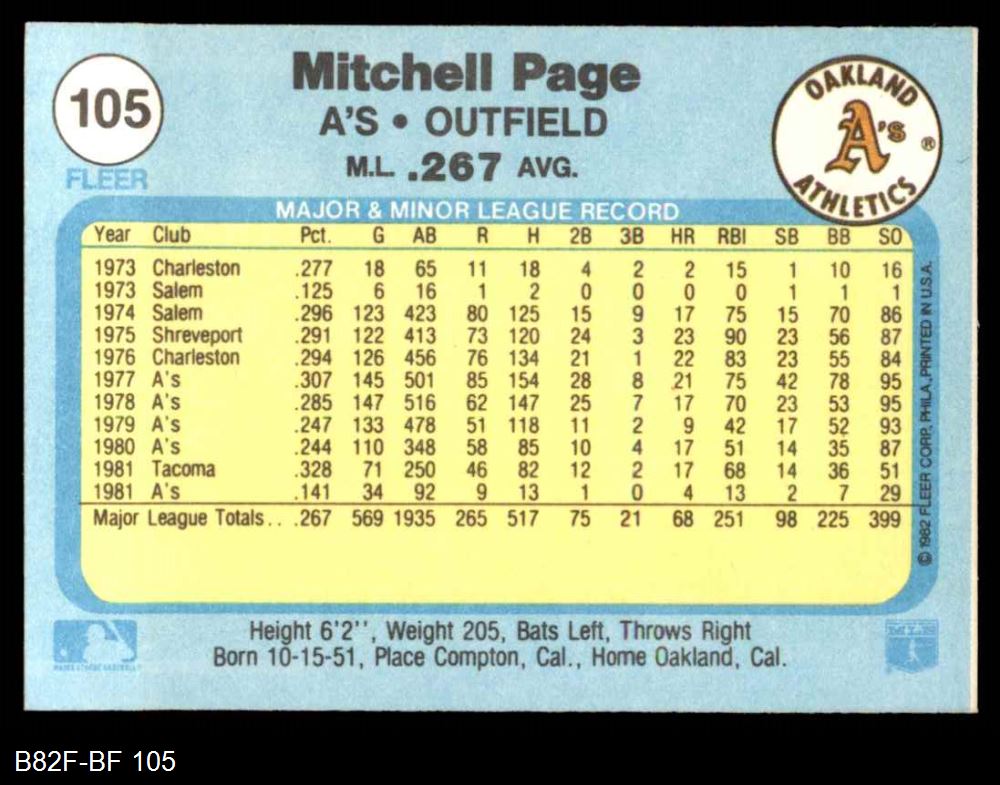 1982 Fleer #105 Mitchell Page