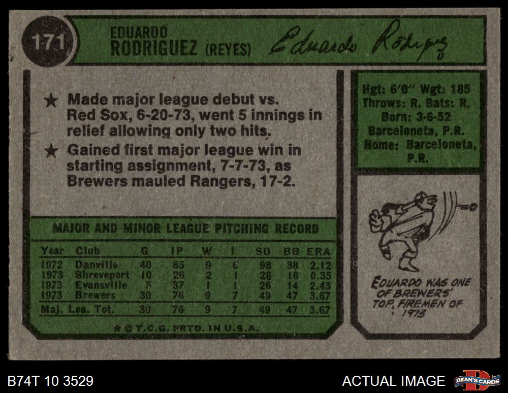 1974 Topps #171 Eduardo Rodriguez 5 - EX