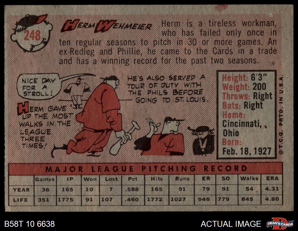 1958 Topps #248 Herm Wehmeier 4 - VG/EX