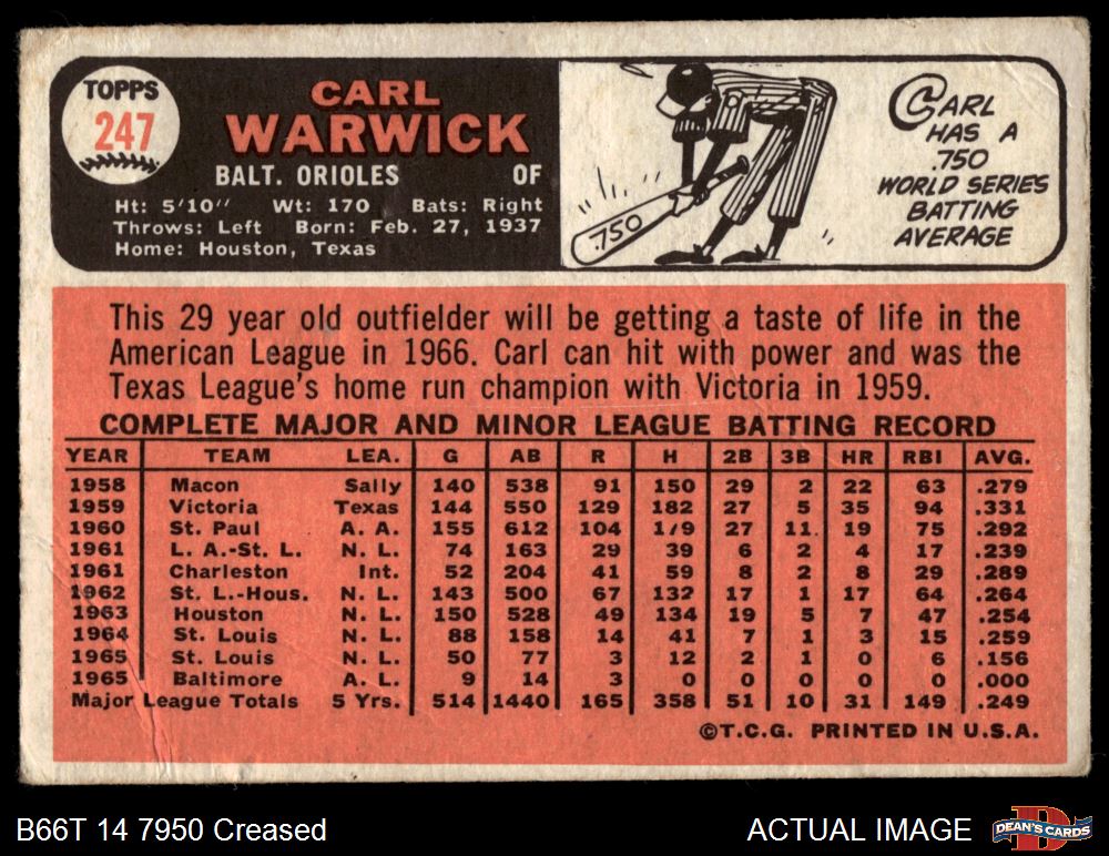 1966 Topps #247 Carl Warwick 1.5 - FAIR