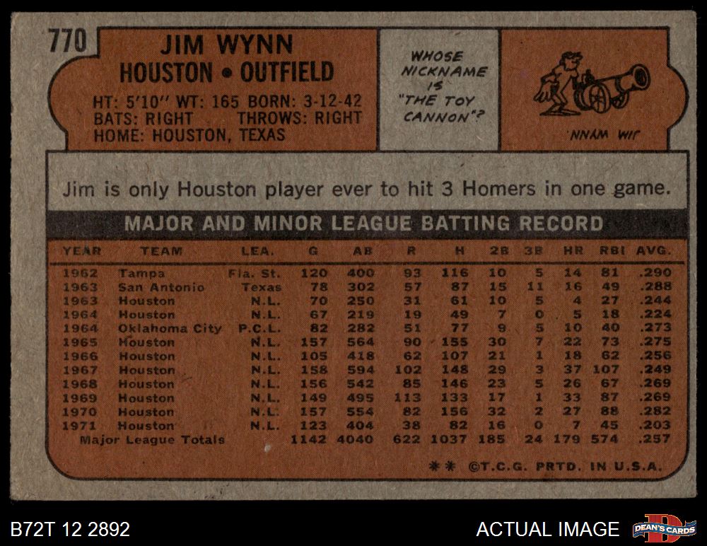 1972 Topps #770 Jim Wynn 1.5 - FAIR