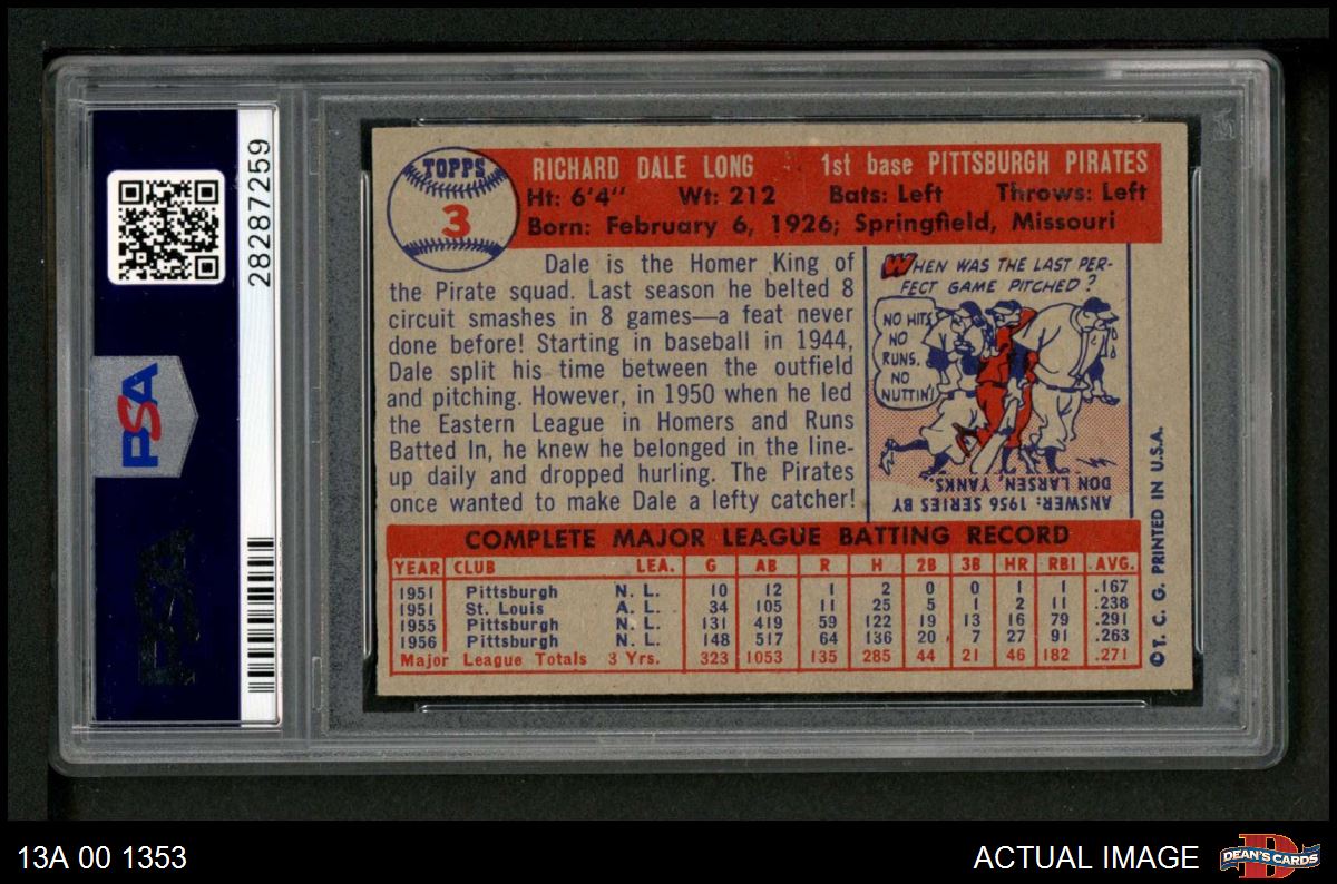 1957 Topps #3 Dale Long PSA 8 - NM/MT