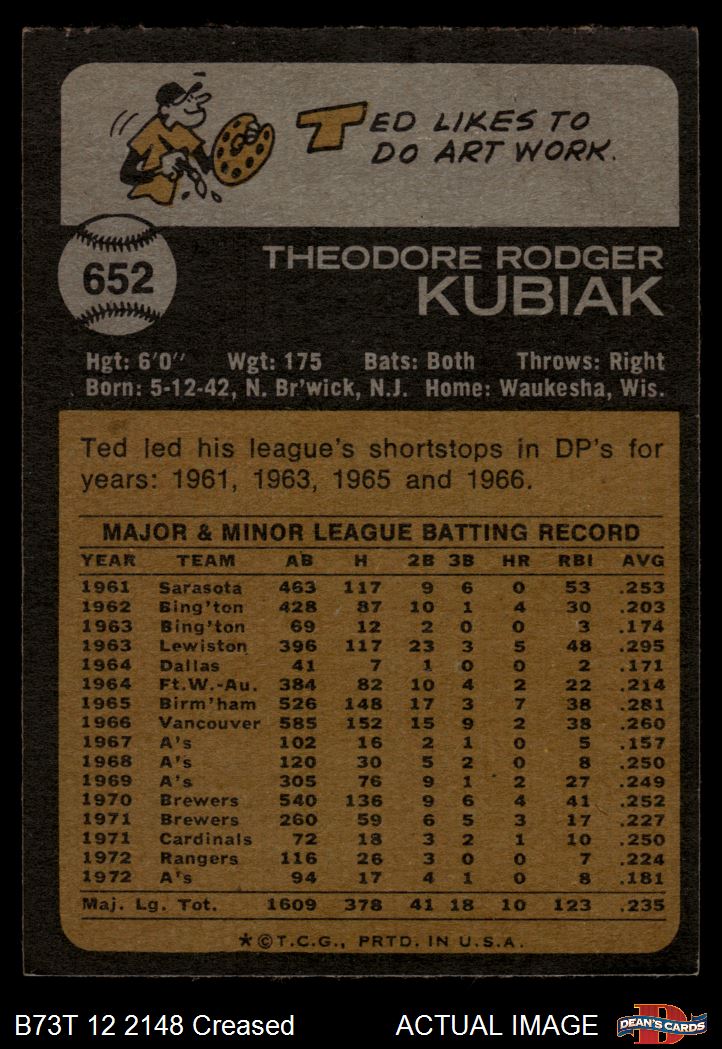 1973 Topps #652 Ted Kubiak 2 - GOOD