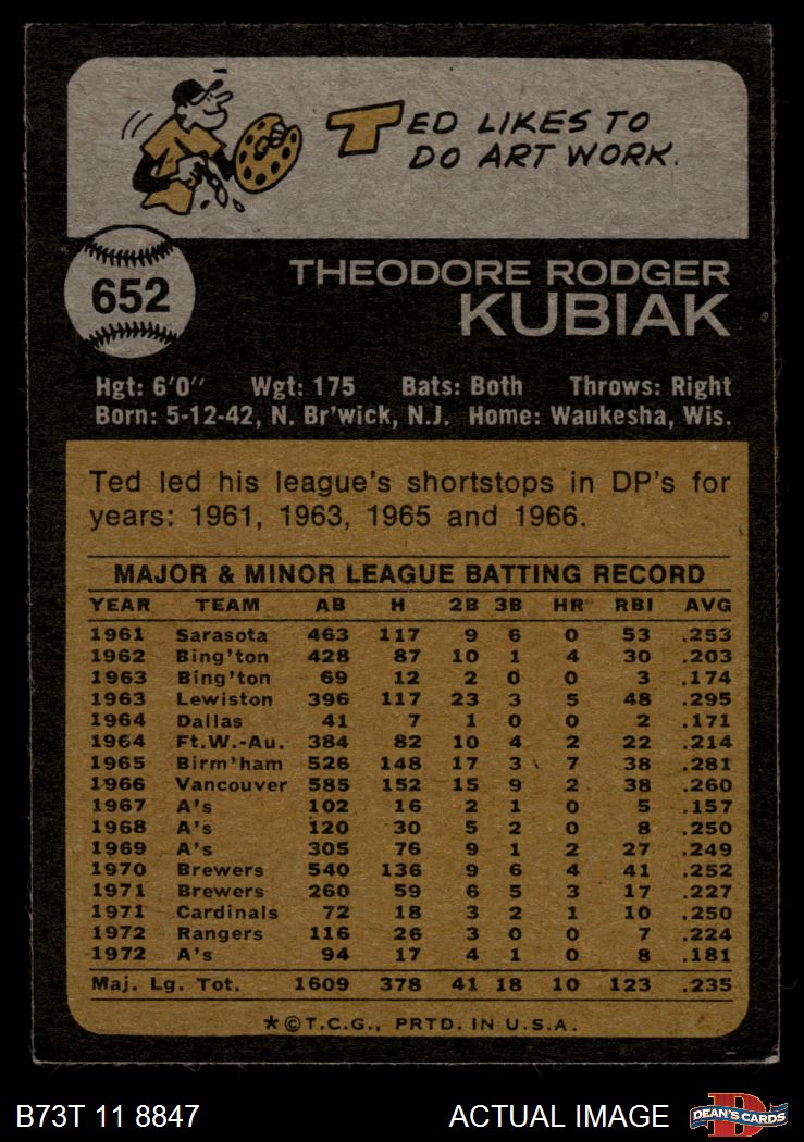 1973 Topps #652 Ted Kubiak 5 - EX