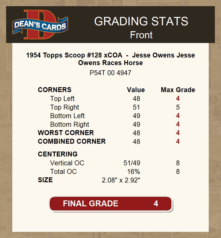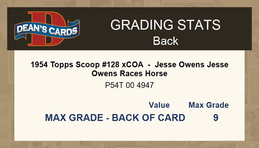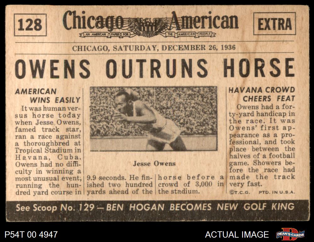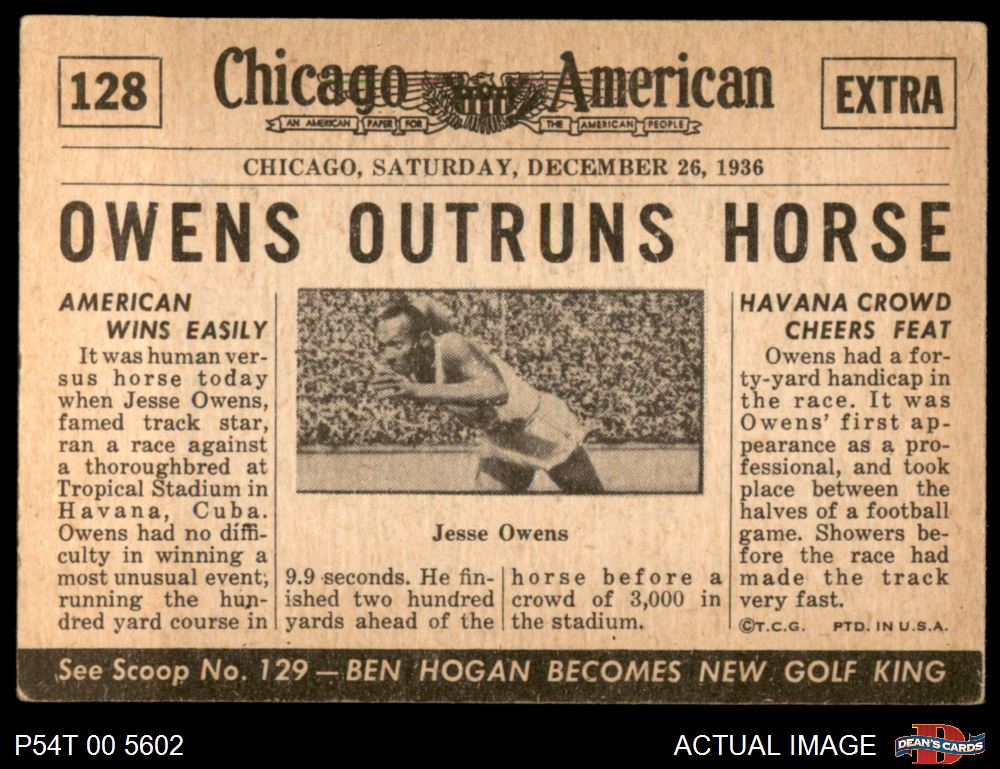 1954 Topps Scoop #128 xCOA - Jesse Owens Jesse Owens Races Horse 4 - VG/EX