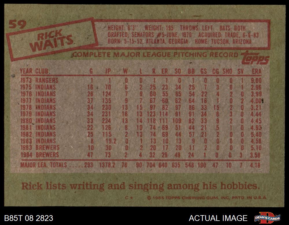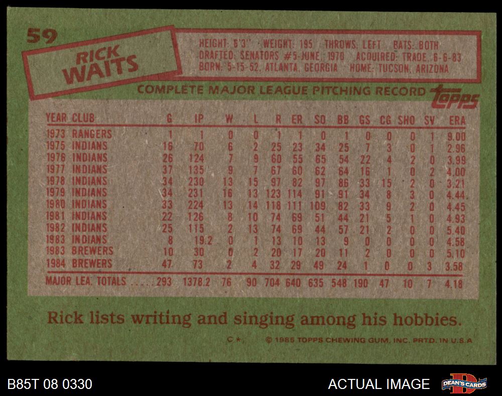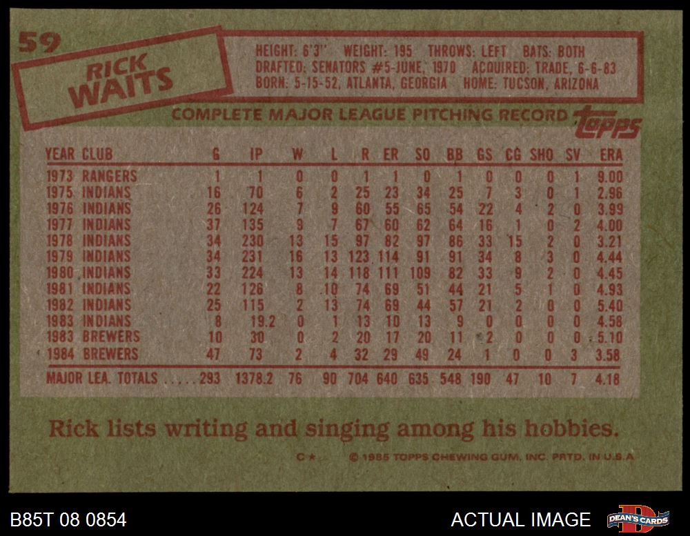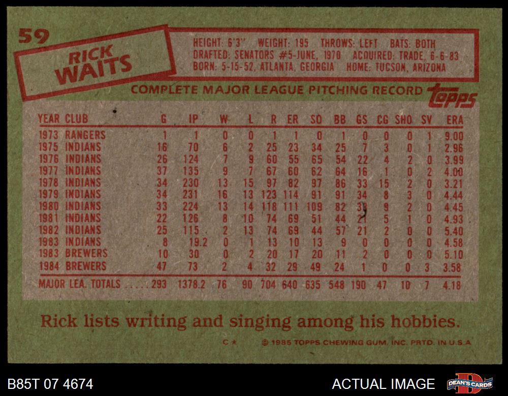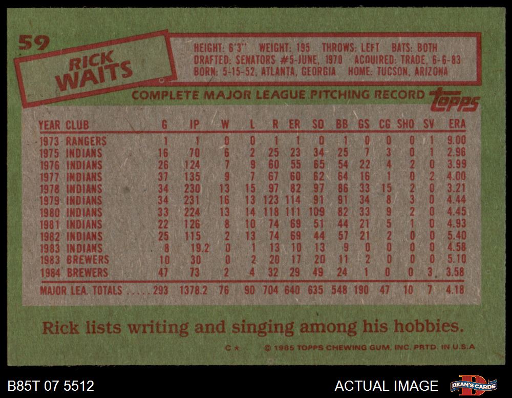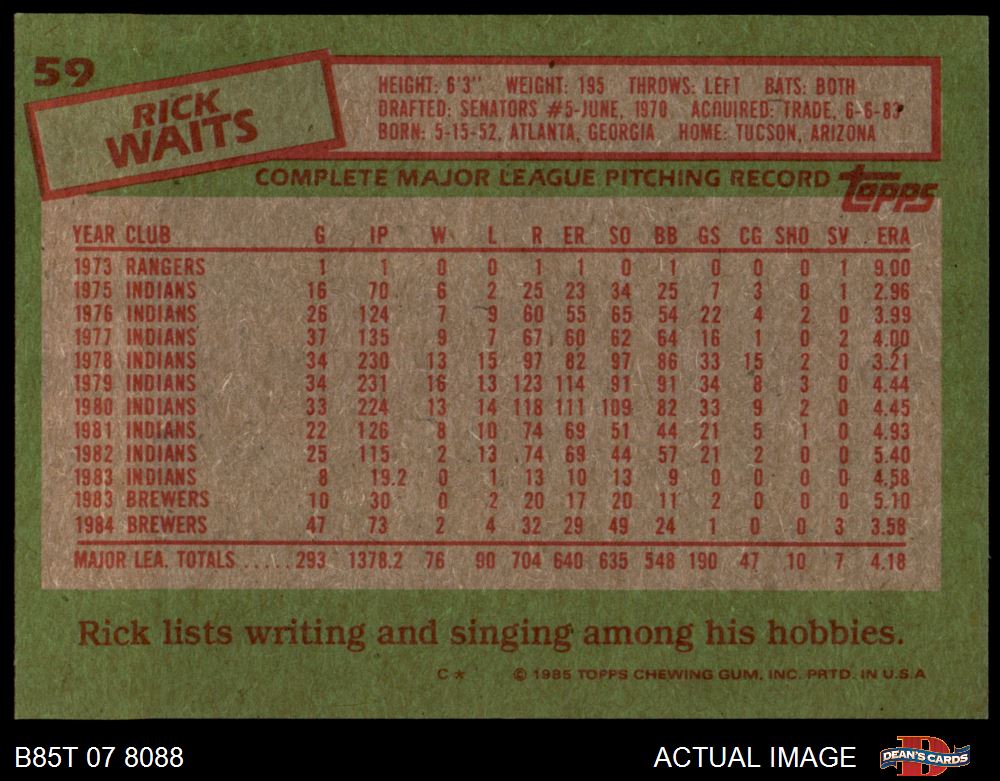 1985 Topps #59 Rick Waits 7 - NM