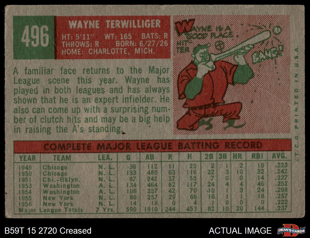 1959 Topps #496 Wayne Terwilliger 2.5 - GD+
