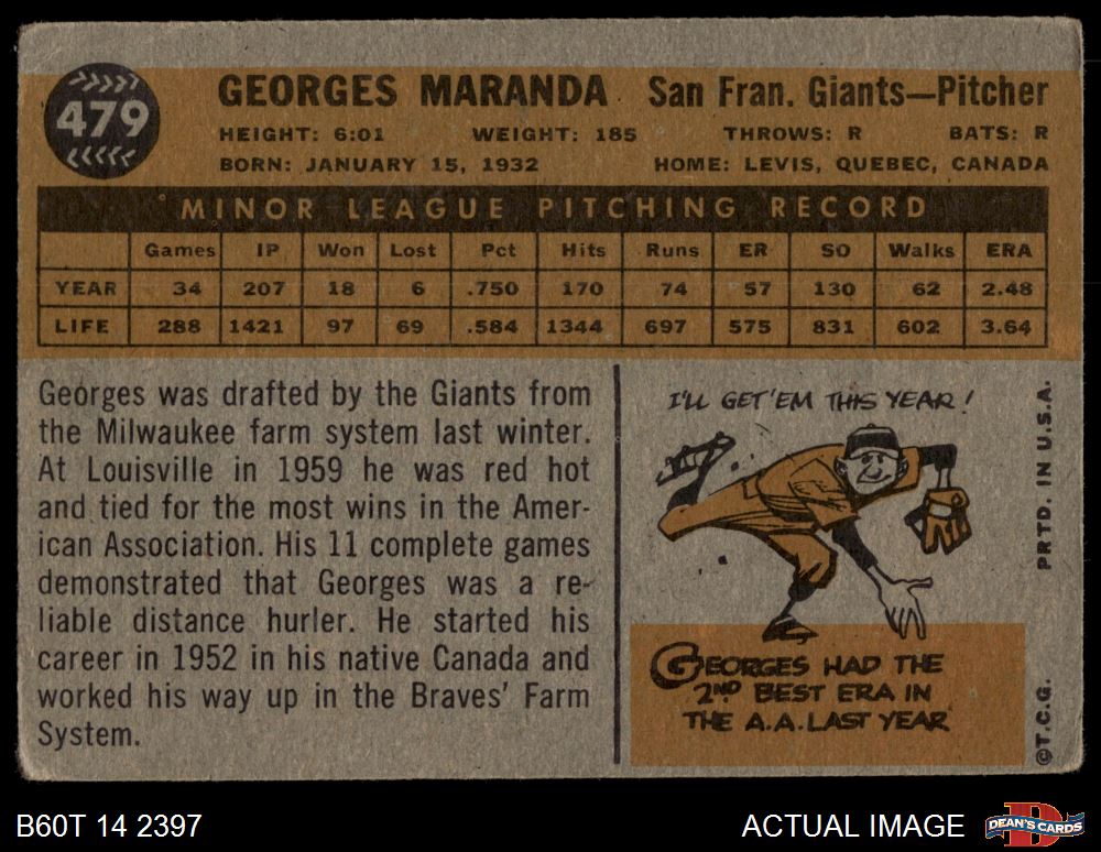 1960 Topps #479 Georges Maranda 2 - GOOD