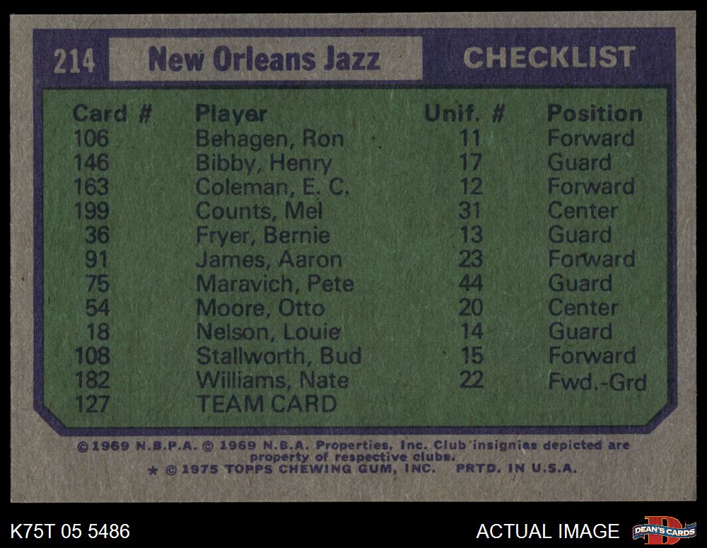 1975 Topps #214 New Orleans Jazz