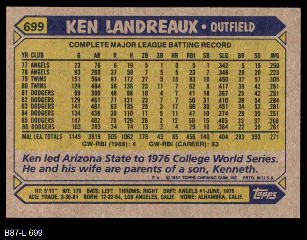 1987 Topps #699 Ken Landreaux