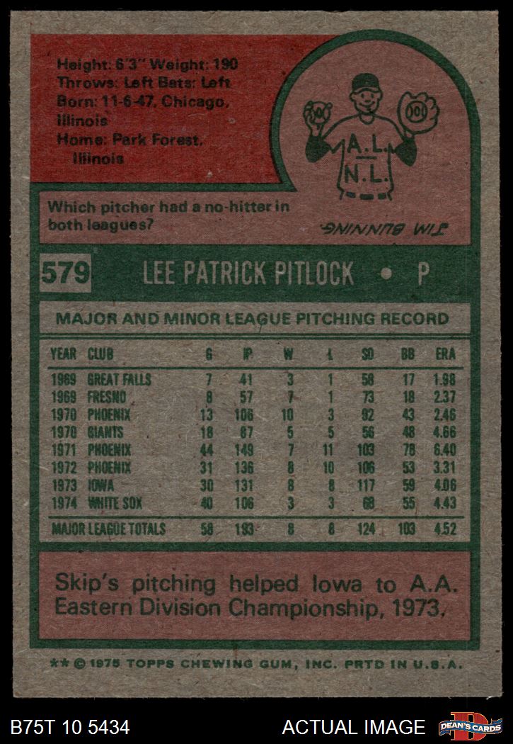 1975 Topps #579 Skip Pitlock 7.5 - NM+