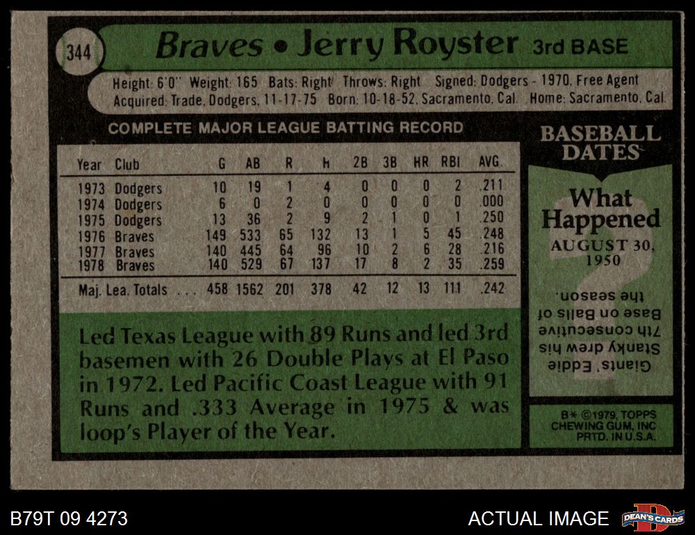 1979 Topps #344 Jerry Royster 1.5 - FAIR