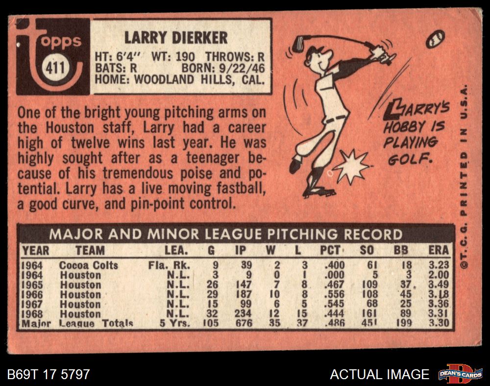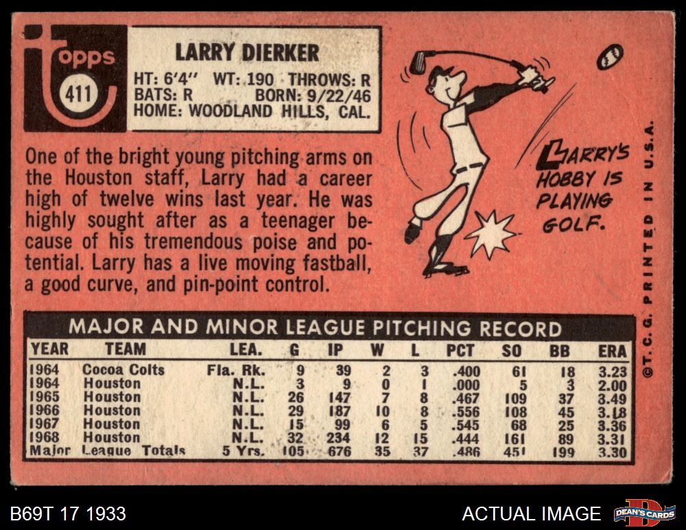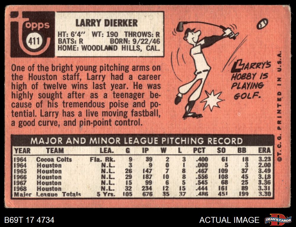 1969 Topps #411 Larry Dierker 2 - GOOD