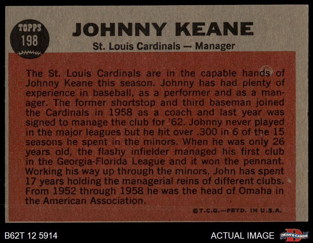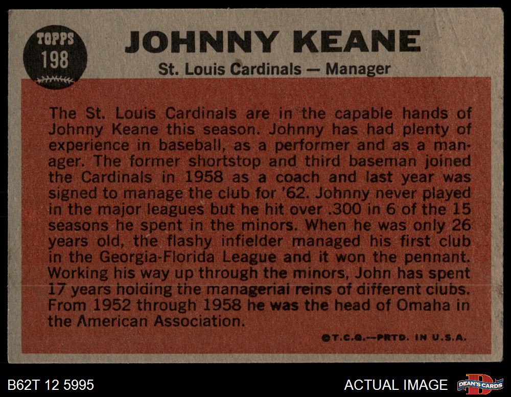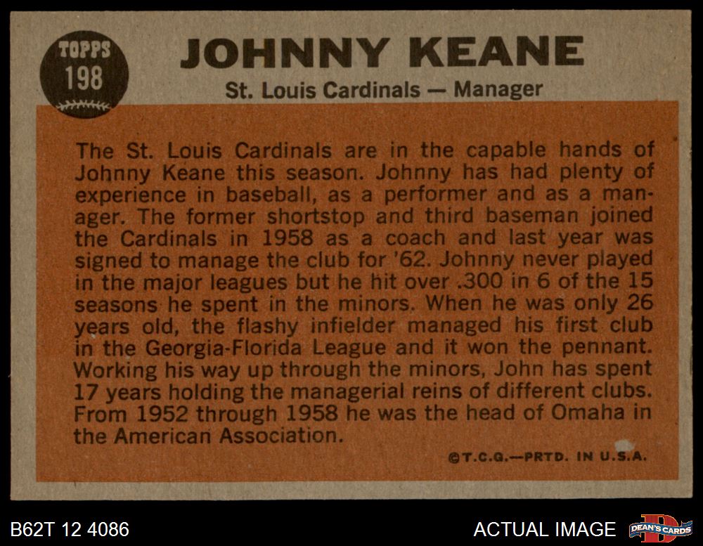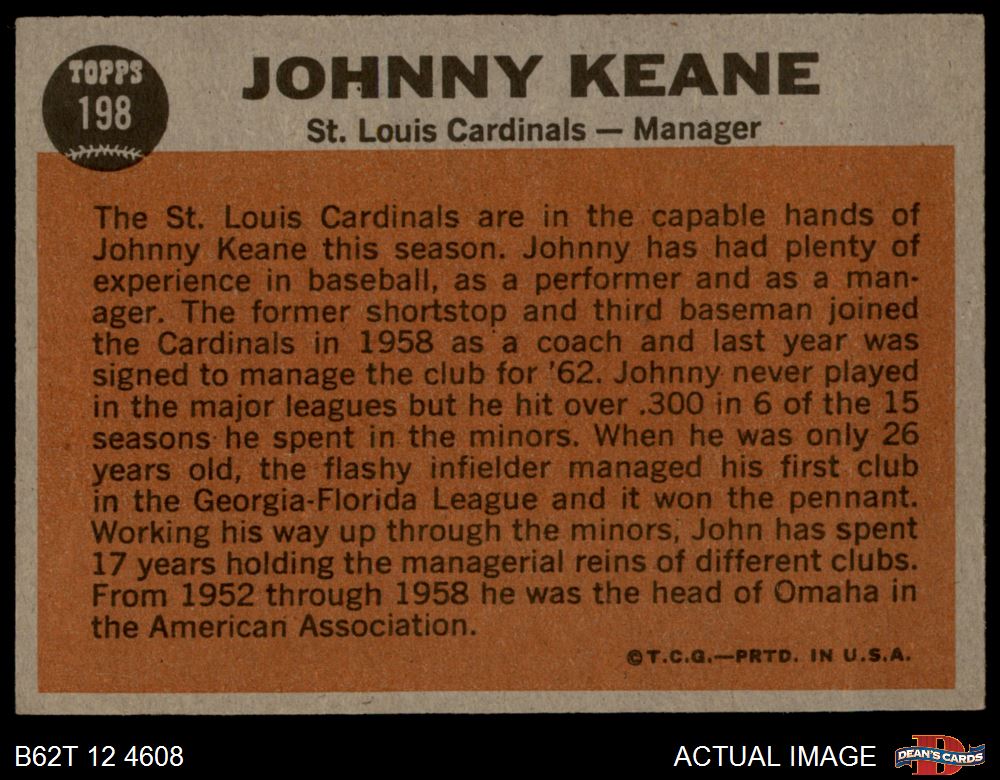 1962 Topps #198 Johnny Keane