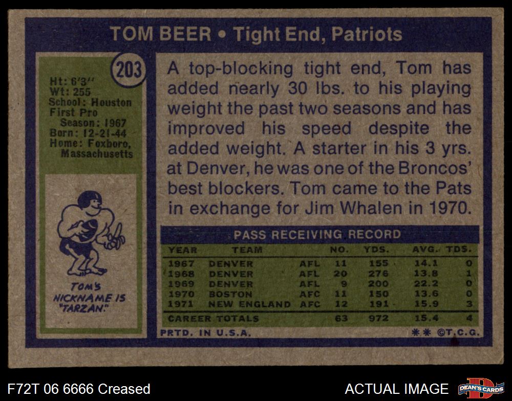 1972 Topps #203 Tom Beer 3 - VG
