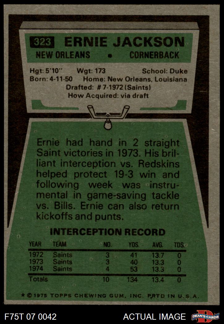 1975 Topps #323 Ernie Jackson 6 - EX/MT