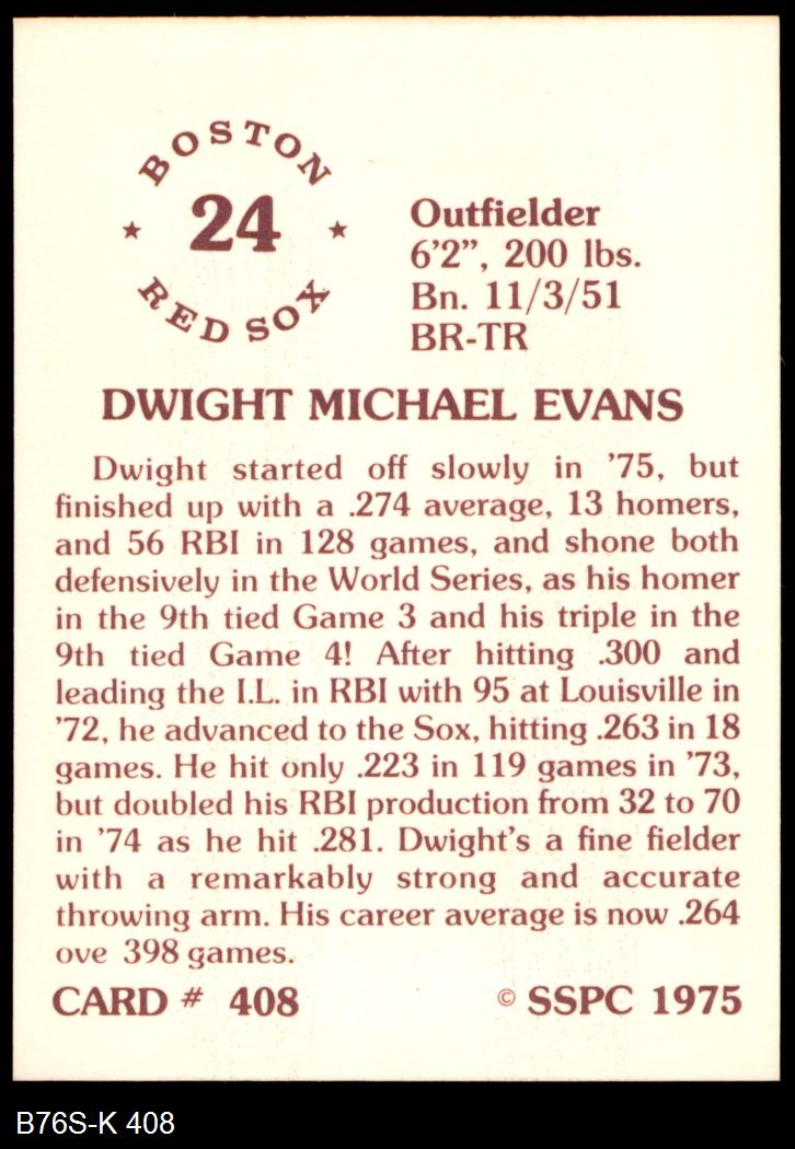 1975 SSPC #408 Dwight Evans 8 - NM/MT
