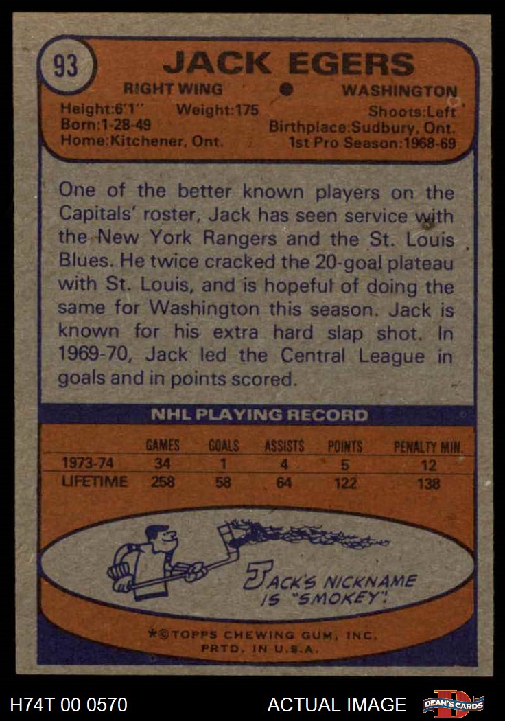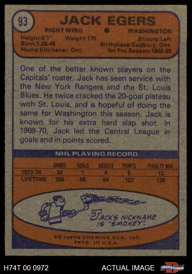 1974-75 Topps Hockey (2,118 available)1974 Topps Capitals-Hockey (138 available)