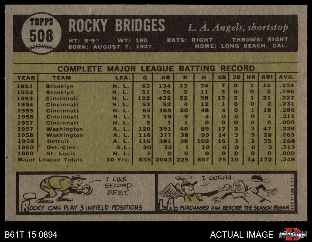 1961 Topps #508 Rocky Bridges 6 - EX/MT