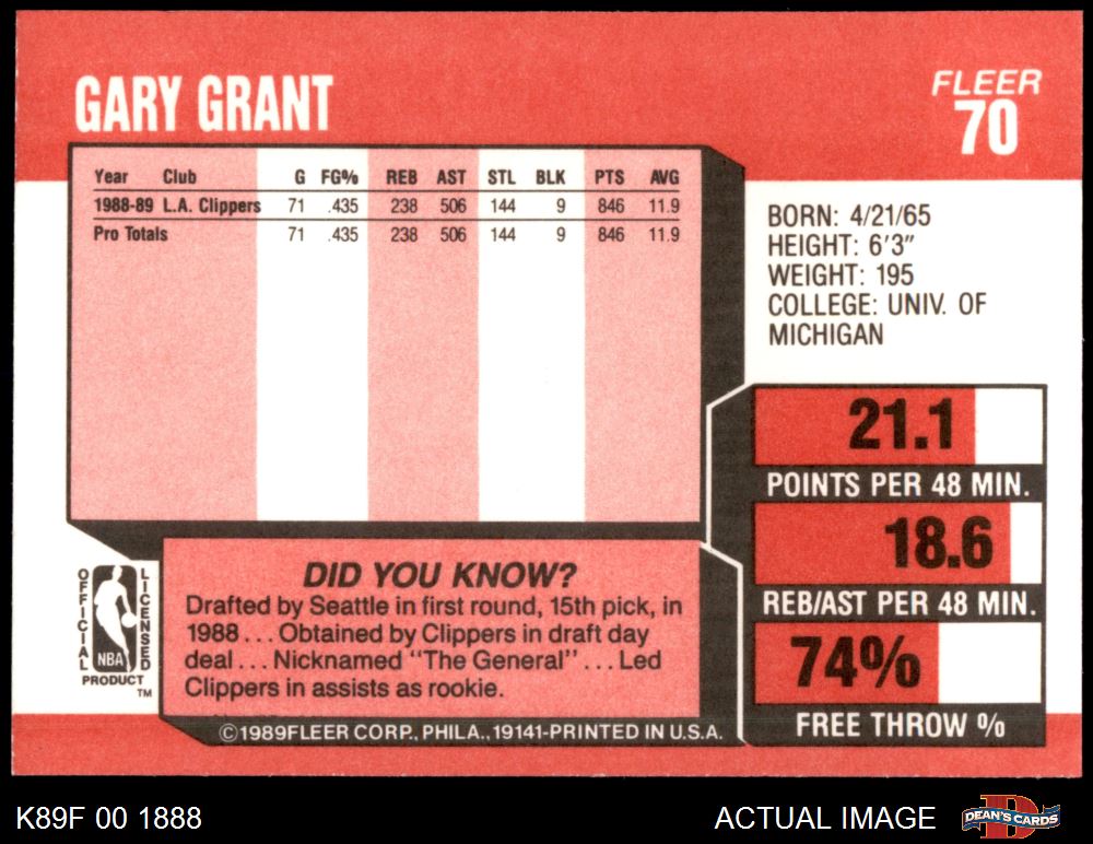 1989 Fleer #70 Gary Grant 8 - NM/MT