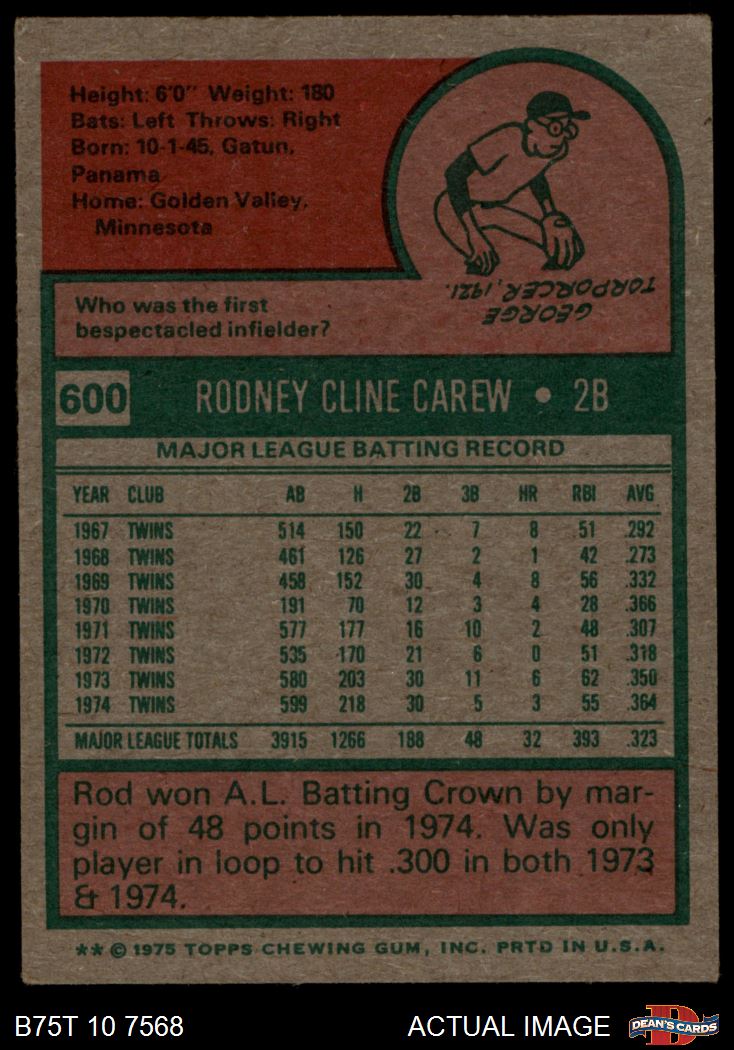 1975 Topps #600 Rod Carew 3.5 - VG+