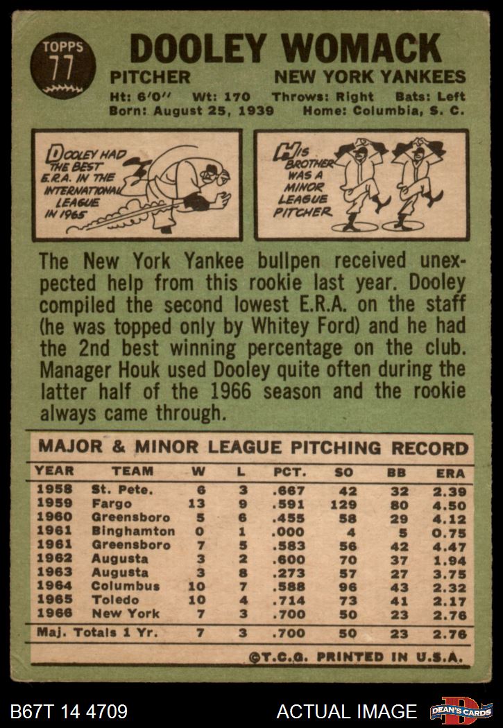 1967 Topps #77 Dooley Womack 2 - GOOD