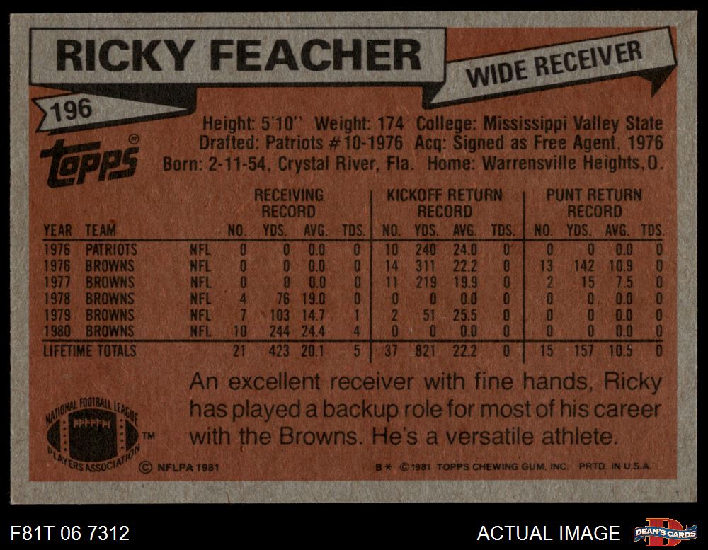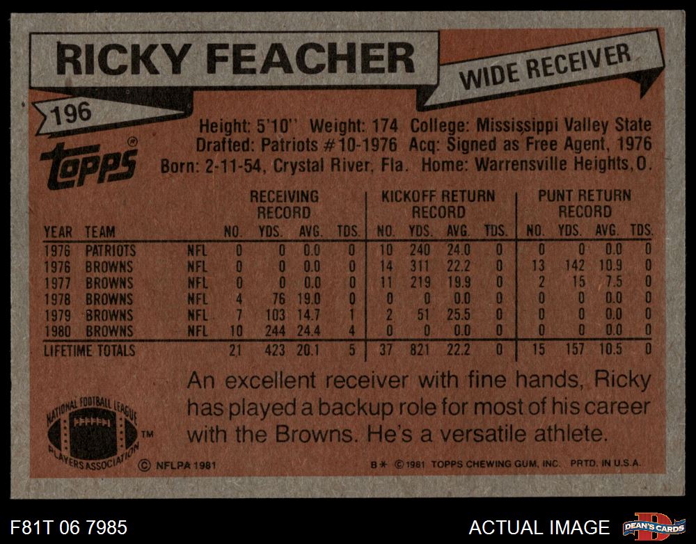 1981 Topps #196 Ricky Feacher