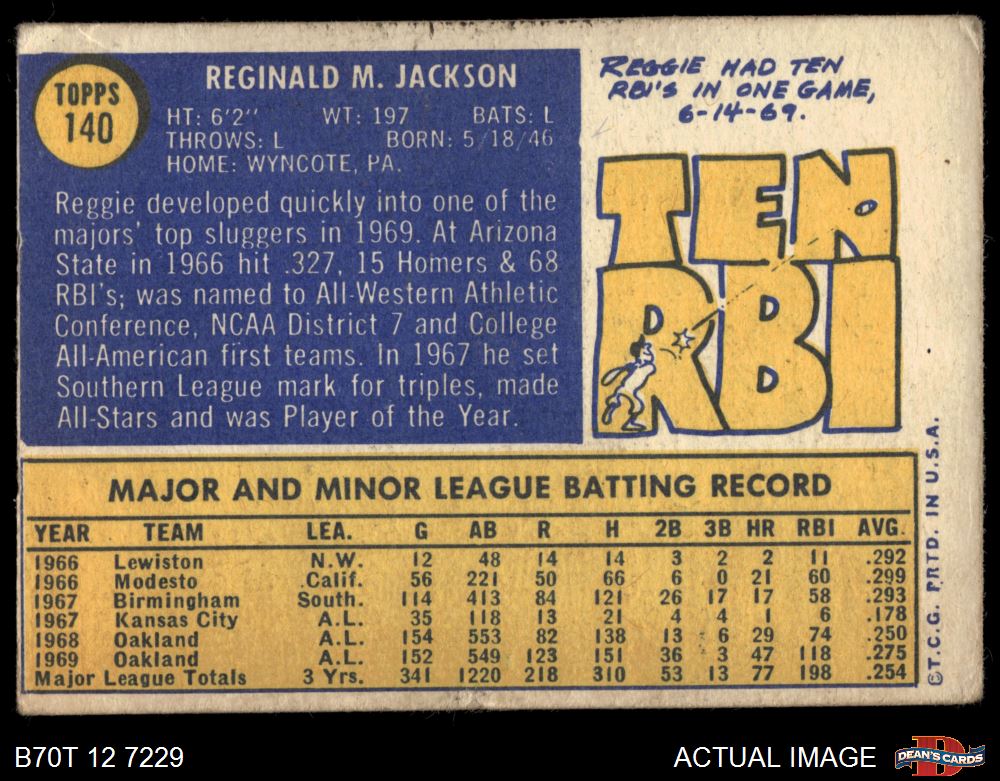 1970 Topps #140 Reggie Jackson 1 - POOR