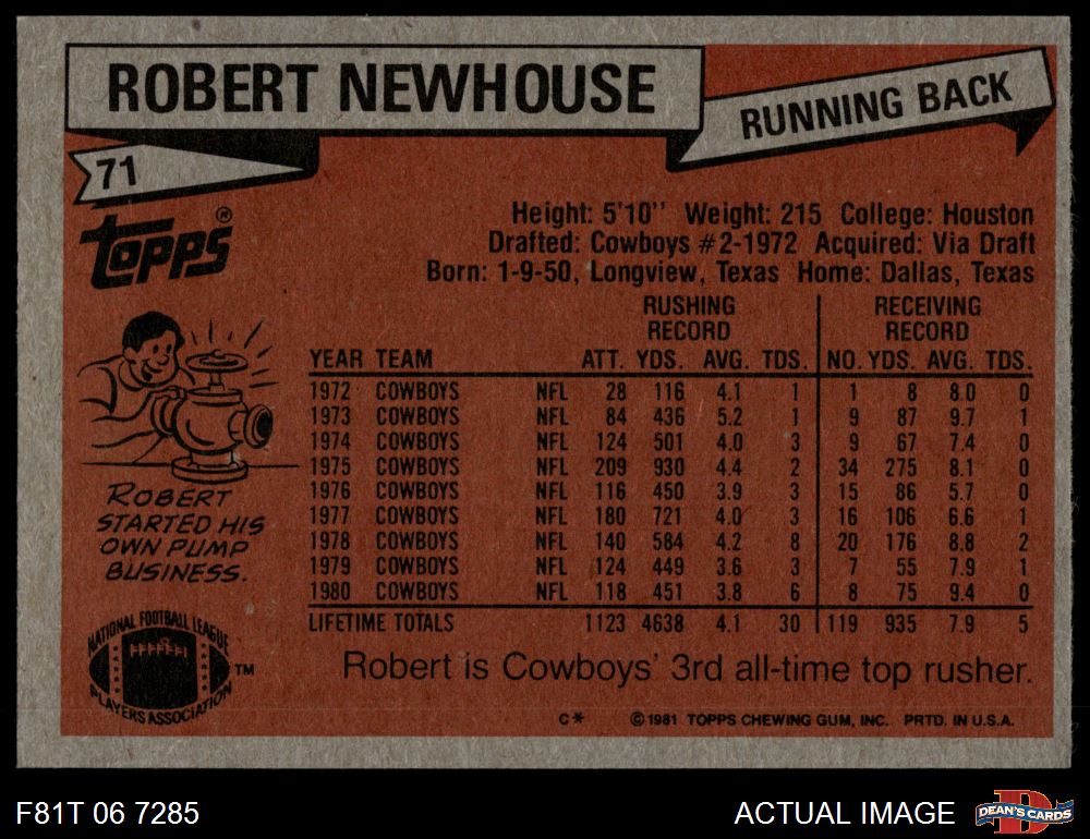 1981 Topps #71 Robert Newhouse 5 - EX