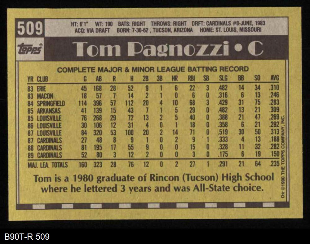 1990 Topps #509 Tom Pagnozzi