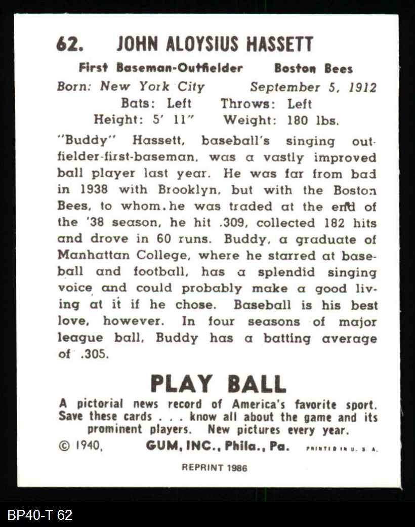 1940 Play Ball Reprint (1,465 available)1940 Play Ball Reprint Braves (83 available)