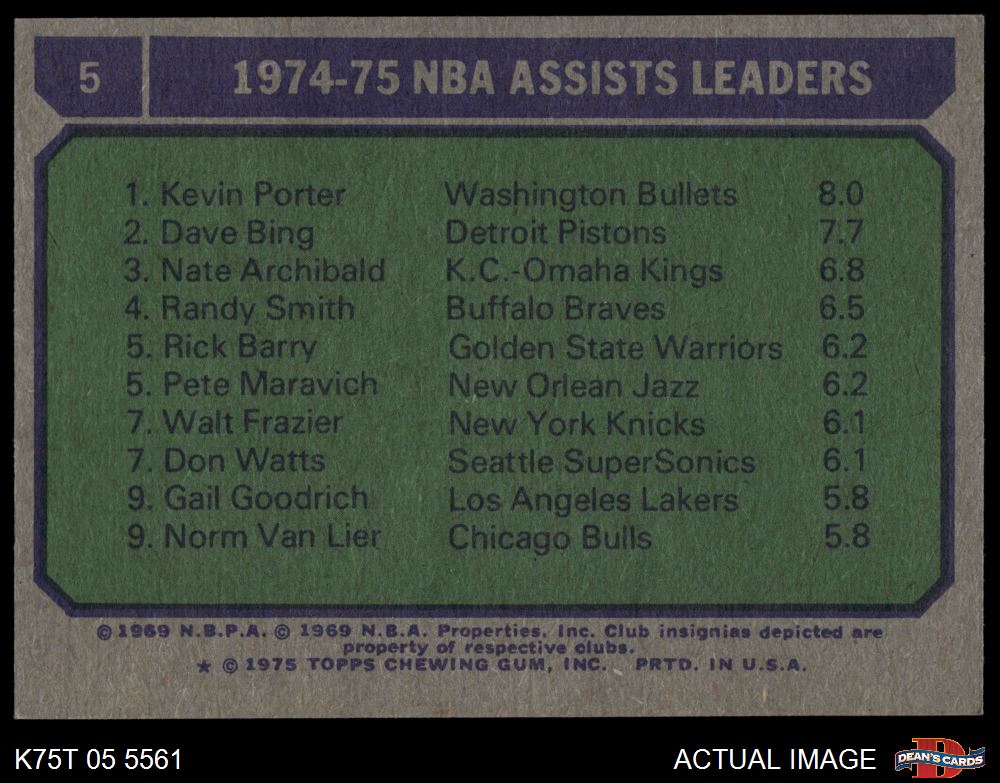 1975 Topps #5 NBA Assists Leaders