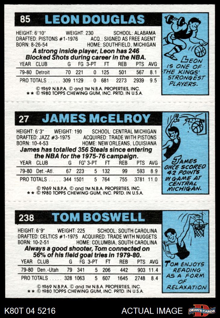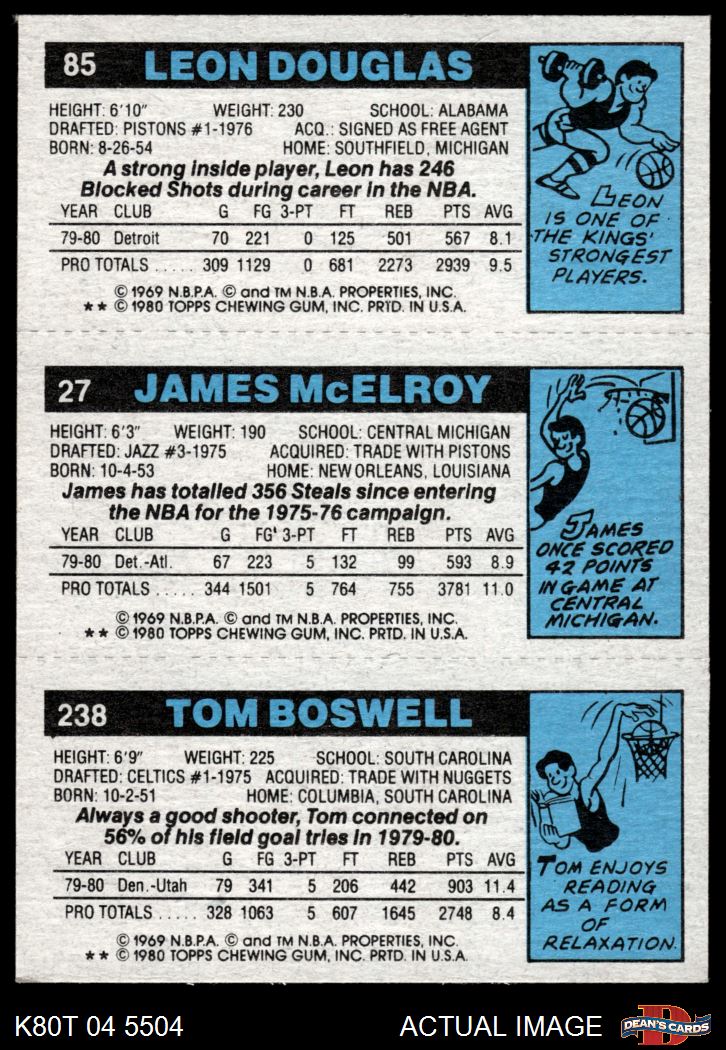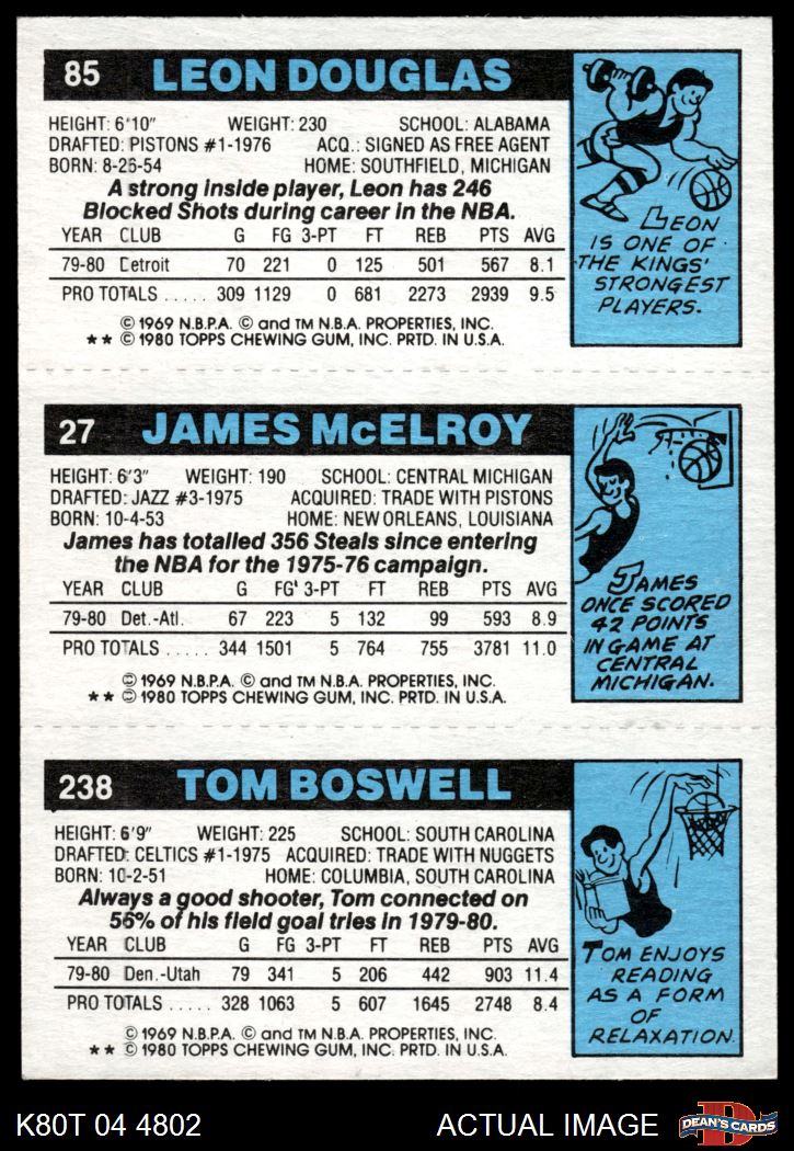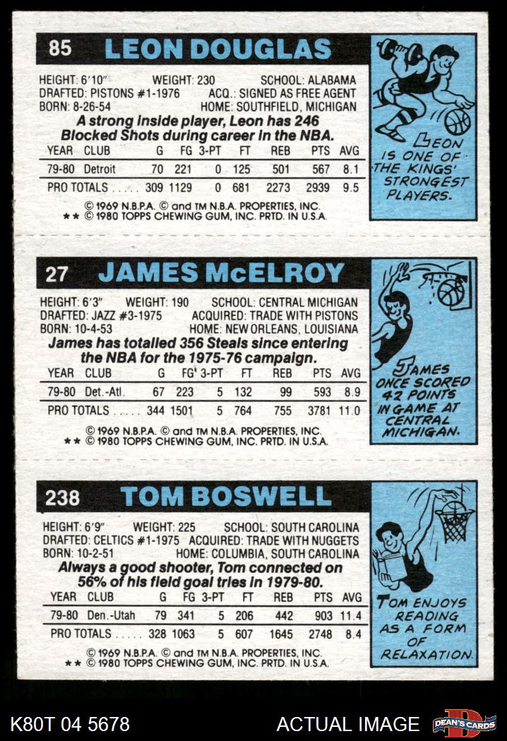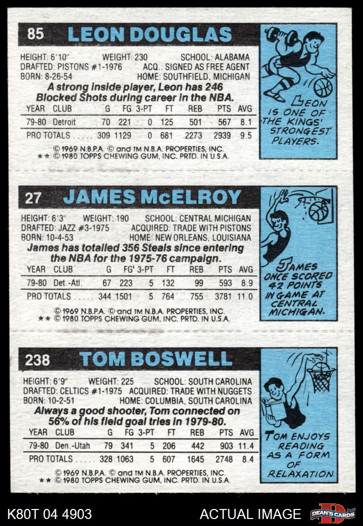 1980 Topps - Tom Boswell / James McElroy / Leon Douglas 238 / 27 / 85 8 - NM/MT